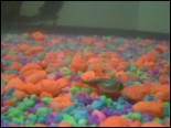No need to worry, the sea monkeys are still doing fine, but as I said almost a month ago, tragedy struck the triops. It all started when I decided that the rocks in their aquarium were not good enough to satisfy their urge to dig. They needed something better, so I went out looking for some sand. Instead of doing the easy thing and getting it from a local playground, I wanted to spoil them and get the sand from Myrtle Beach, SC. After a week of work, I traveled down there to stay for the weekend, and then brought the sand back home to put in their tank. All was well for awhile, until I noticed that they were moving around very lethargically later that night. I immediately transferred them to a fresh water tank that was filled with PUR filtered water. The four of them flailed around for a few hours, but eventually, one by one, they bit the dust. When I woke up in the morning they were all floating there, and I had yet to determine the reason. I later figured out that the sand must have had too much salt from the ocean in it, and had converted their fresh water to salt. Research on the net told me that they couldn't live in salt water. Now here is the weird thing. Just today, as I was getting ready to dump out the tank and clean it, I noticed something swimming around inside! Somehow, a triop baby had hatched in this harsh salt water environment, a month after its parents had died. I couldn't believe it! The miracle baby looked to be already a week old, how he survived that long without food is another mystery. It has been transferred to a fresh water tank and is doing fine. Here are the last videos I took of the original four triops.